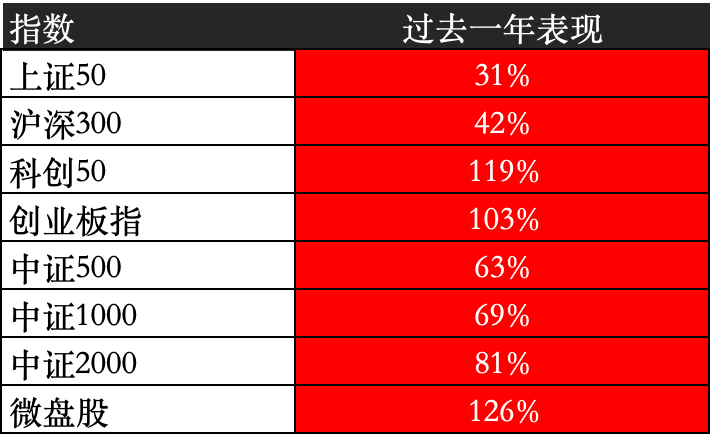 终于a股被唤醒,开启了一波估值修复的行情。过去一年a股主要指数表现如下: