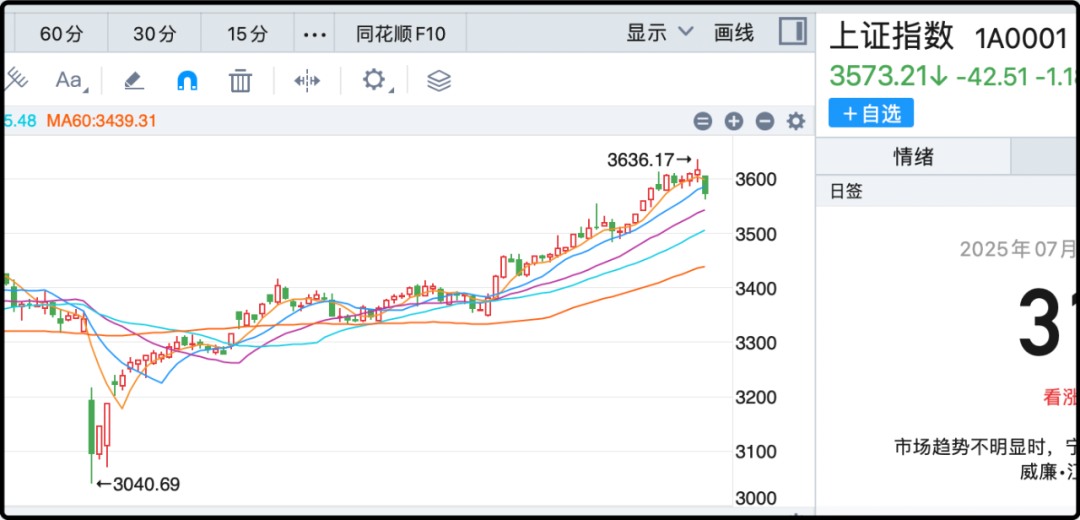 我觉得最近连着涨的有点多,上证指数已经连续28天没有回踩过ma20,调整确认一下正常。起码目前的图形看依然是典型的上升趋势,离反转的临界还蛮远的,如果不是左侧逃顶型选手,目前谈跳车止盈还早。