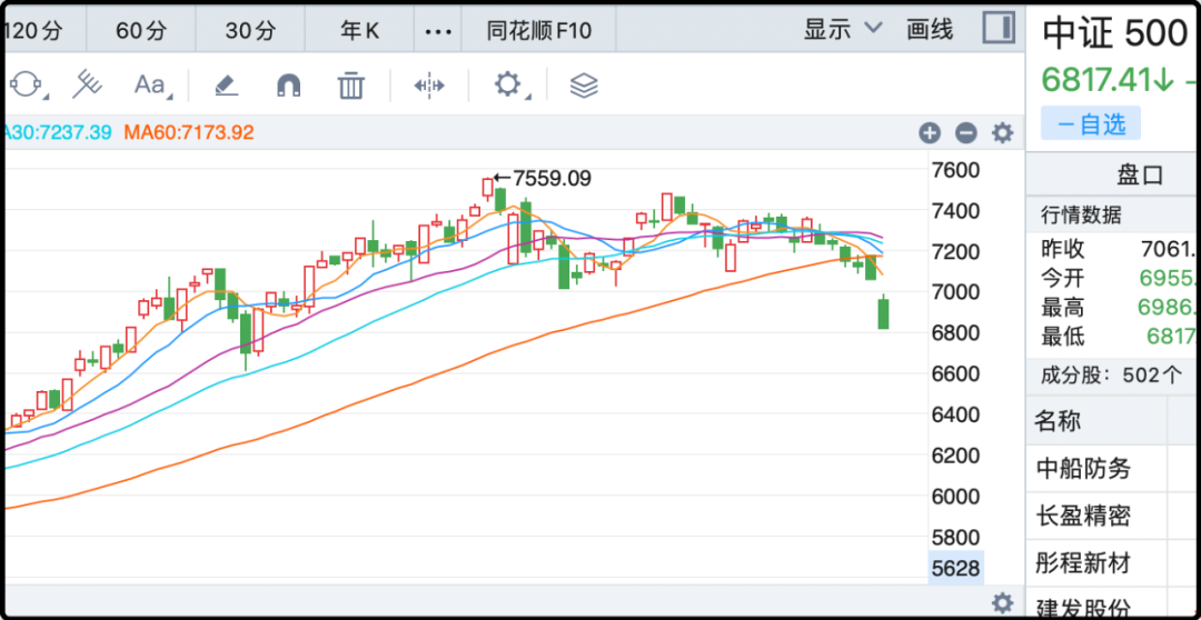 那下周还会跌么?我也没有把握判断方向,我只有具体的操作计划,老读者都知道的,即中证500超过7000点,每涨1%卖1手期指,最高到7559点,我因此卖了7手,总持仓31手降至24手。