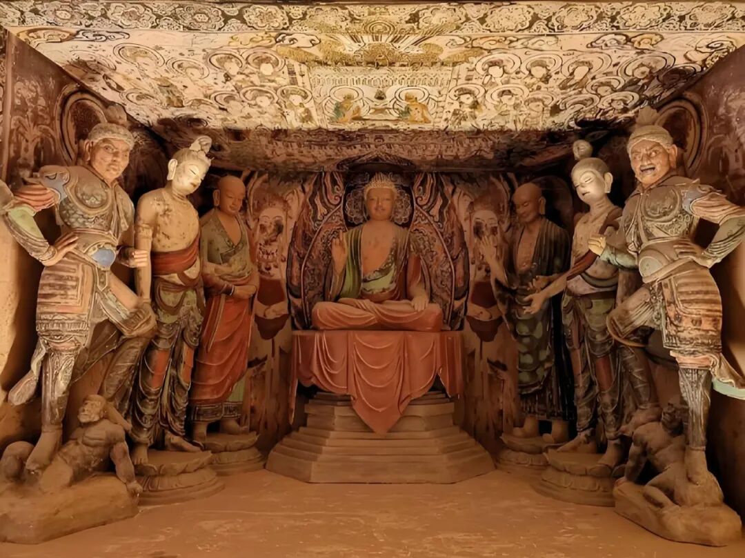 第45窟:盛唐彩塑的巅峰之作,塑像神态栩栩如生 。