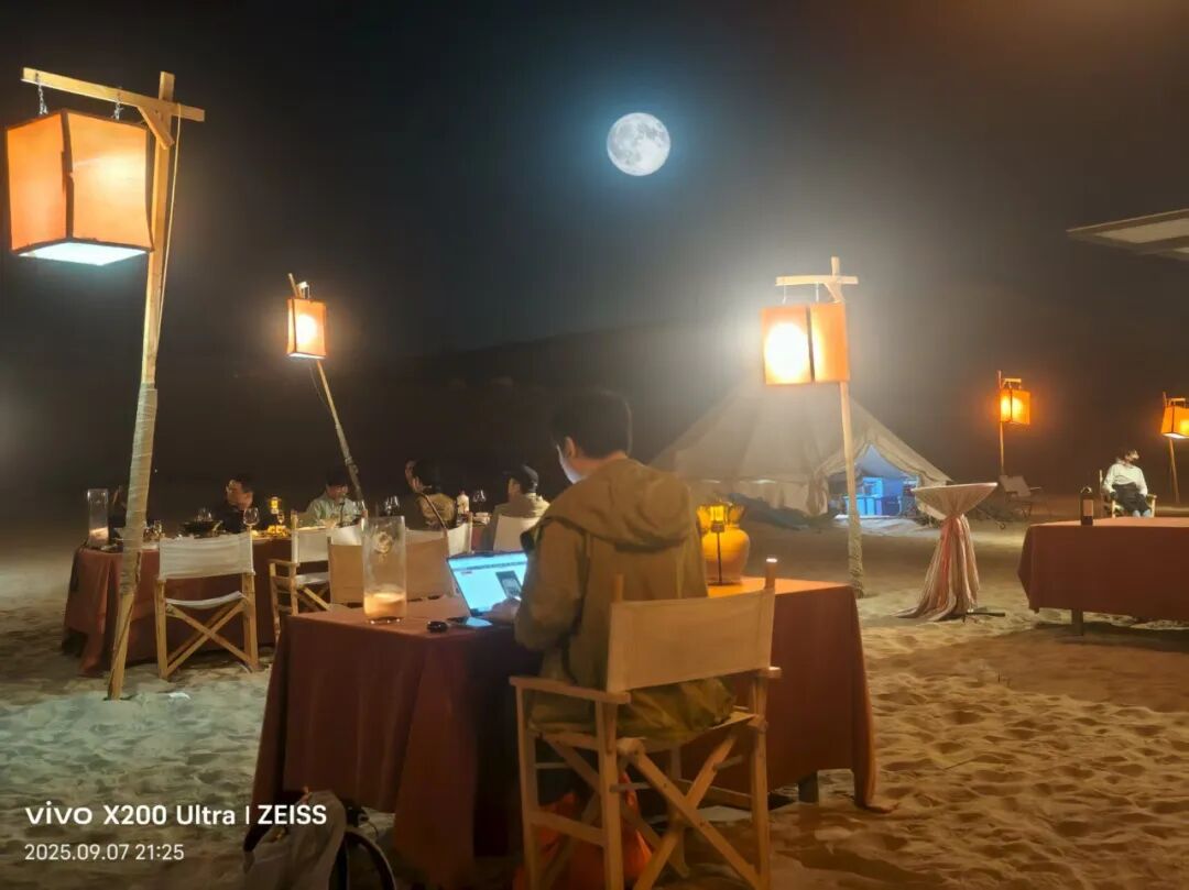 照片不全是我自己拍的,上面这张是我带着我妈在营地附近散步。最后是我晚上写文章的照片,亲友们都嘲笑我是队伍里班味最重的人,哈哈哈,要上钟啊。
