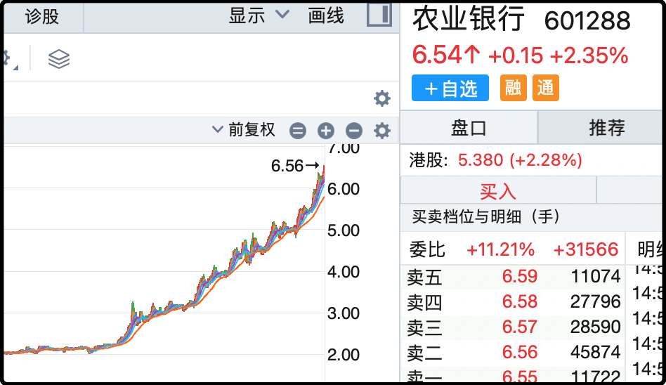 农业银行本身的业绩并没有大的波动,出现变化的还是市场环境本身,起初可能是低利率的挤压效应,之后是机构资金从分红现金流考量的仓位考量,再然后赚钱效应来了,跟风盘也来了。到了现如今的阶段,农业银行的股价已经不可避免的包含了价格投机的资金。