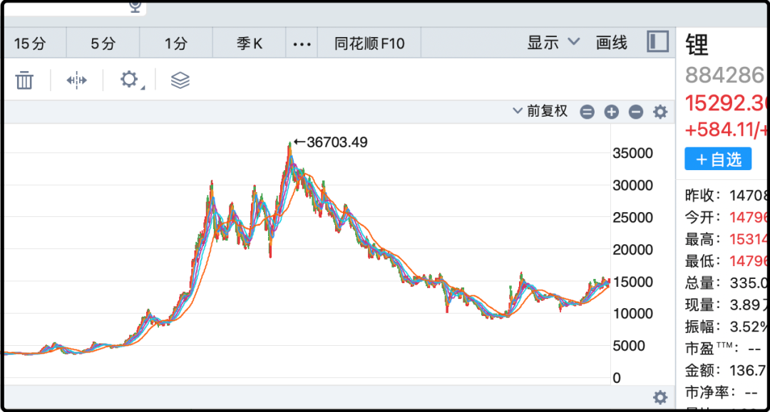 与储能电池联动上涨的还有锂矿板块,这个其实踏空资金也是可以看看,2021那波高峰下来回撤了75%,如今虽然从底部反弹近6成,但依然只有昔日高位的4成,连腰斩线都没到。能源金属都是强周期板块,一旦周期回暖爆发力十足。