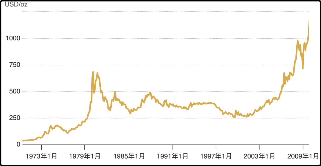 这样的事情在历史上是有先例的,黄金曾经在1980年有一波大行情,之后回落调整了20多年,一直到2006年才成功填坑创出新高。我贴个图,你们注意看底下的年份坐标。