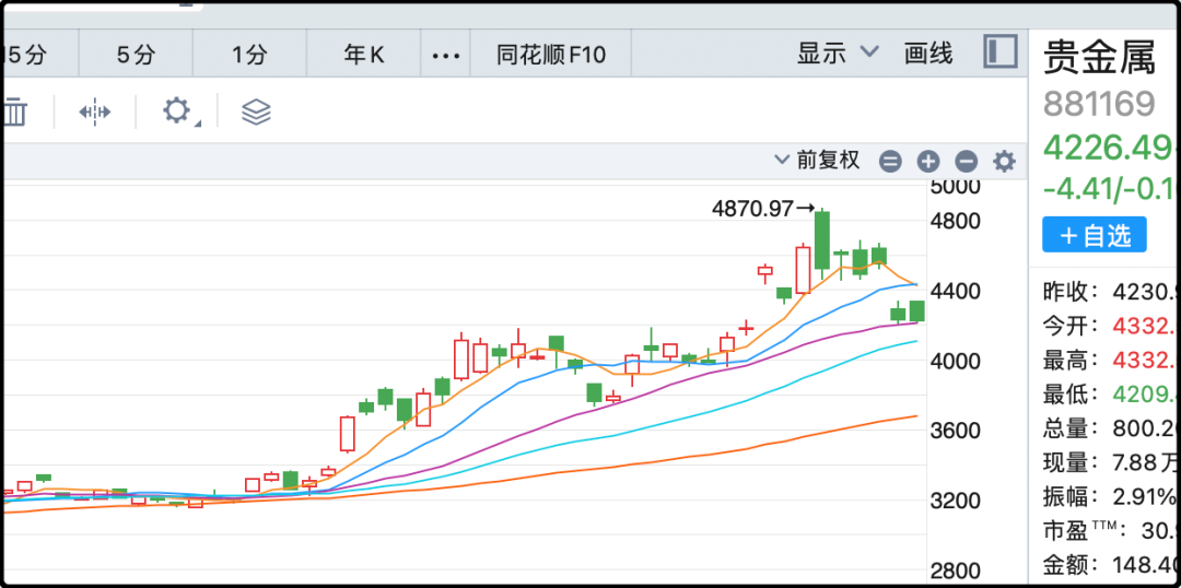 今晚的金价一路跳水,从4370目前跌到了4210附近,明天还会接着盘整,终于能给黄金空头喘口气了。之前连续逼空2个月,带杠杆的非死即残,k线上全是倒毙路边的空头。我之前说金价在4500之前有一波周线级别的调整,但说归说,我自己的黄金仓位是不打算卖的,更不敢去做空,可以看作是一直买够仓位的狐狸在骂葡萄酸。