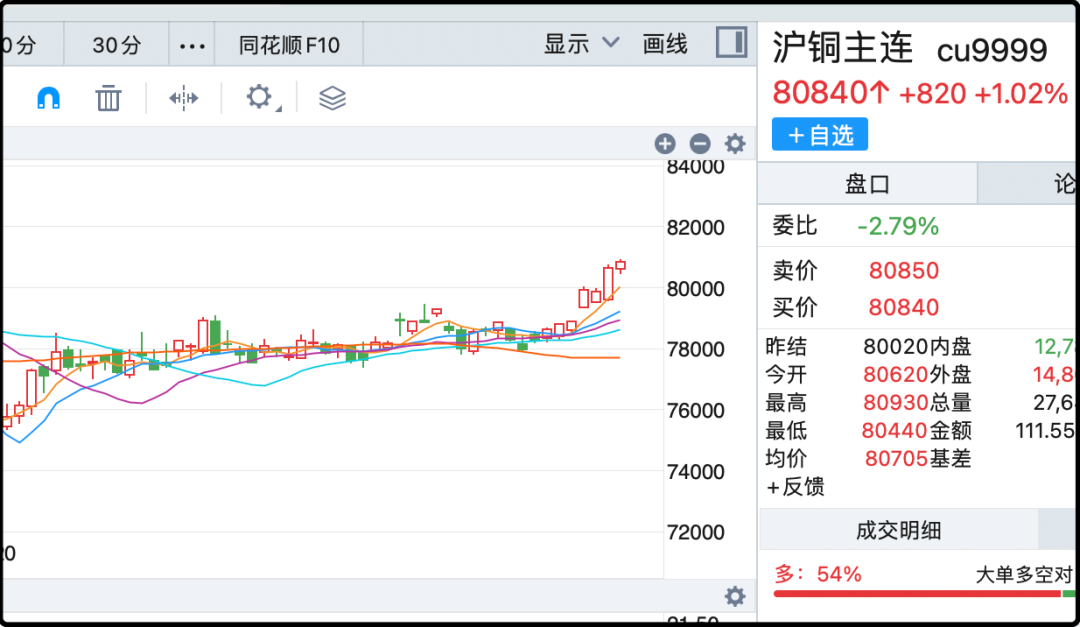 3、最近铜期货突破平台连续上涨,带动了有色板块走强.