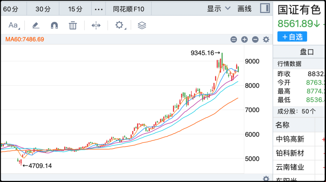 有色今天也遭遇了回调,但接下来美元就会降息,北京时间10月30日凌晨2点的会议,降息0.25%概率98%。另外12月份预期降息0.25%,以及2026年预期降息0.75-1%,大宗商品的行情不太可能就在这个位置止步,后市还能再看看。