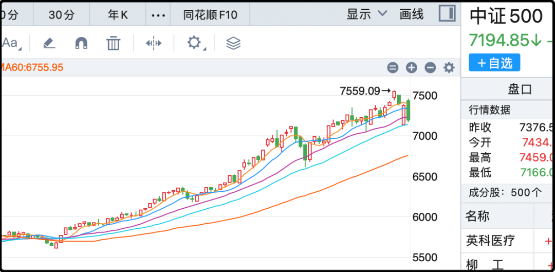今天a股没少跌,各大指数被重创,中位数下跌0.98%,感觉把昨天硬挺着的那口气都吐了回去。有一个现象,今天中证500的指数没有跌破昨天的低点,但是中证500的期货已经比昨天最低点还低了将近2%,这说明了今天市场的信心远远不如昨天。